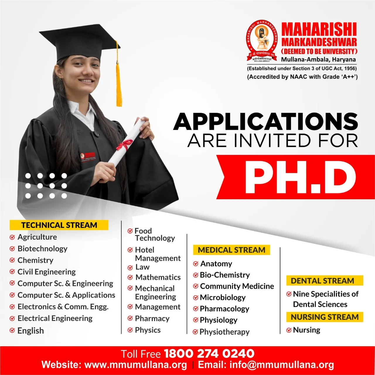 Accredited by NAAC with Grade ‘A++’, MM(DU) has built its goodwill as the best university of North India with a rich legacy of excellence in research, innovation and skill development. MM(DU) incorporates the best of both the worlds by presenting a synergy of curricula from both the UGC model of education and the leading schools from around the world.