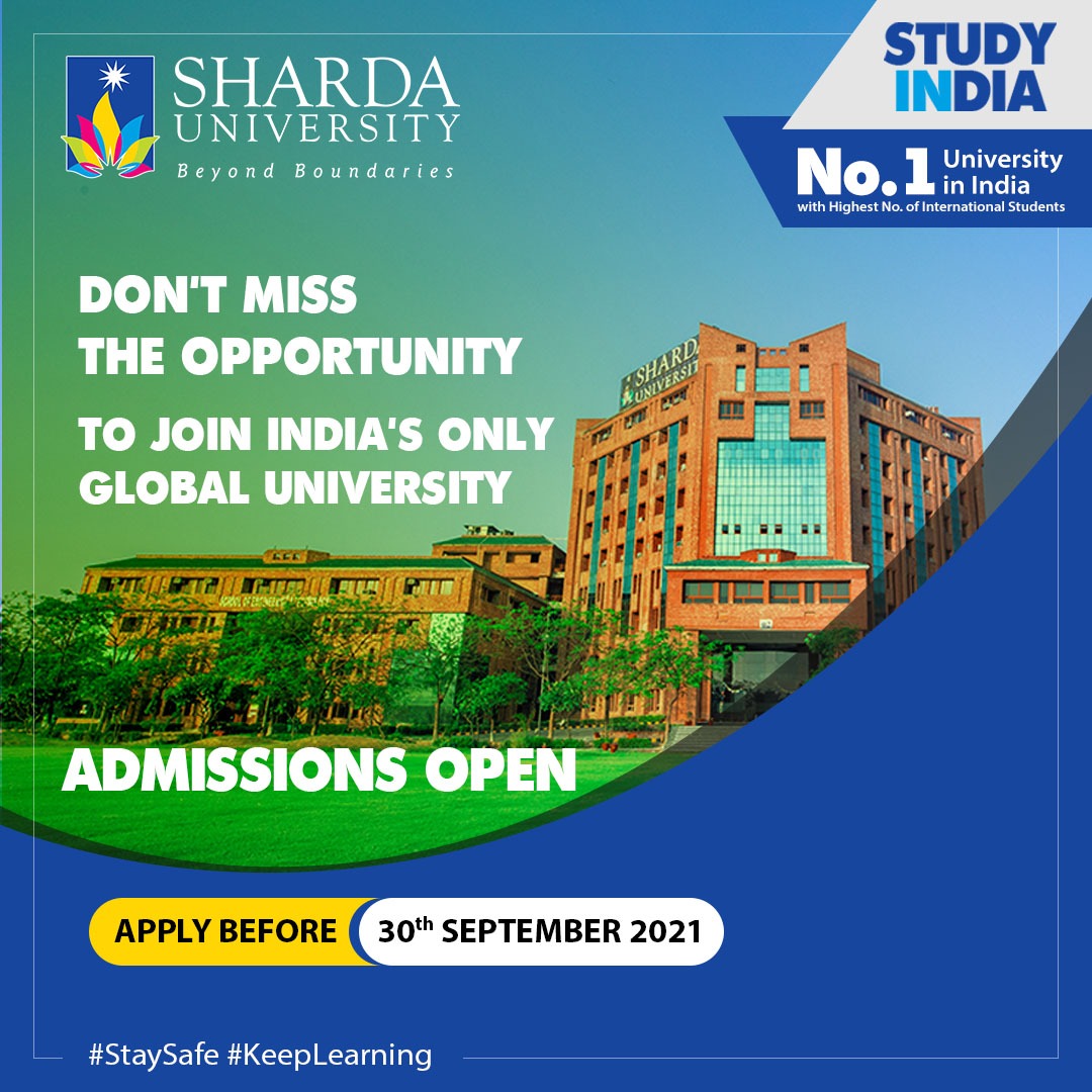 The Sharda Group of Institutions has been a provider of world-class education since 1996. It is the largest educational group based in Uttar Pradesh, having 13,000+ students and 900+ faculty strength. It has 23000+ alumni who are today leaders in their realms. With state-of-the-art campuses in Agra, Mathura, and Greater Noida, the group has transformed the perception of education by adopting a broader approach and focusing on overall development of an individual.